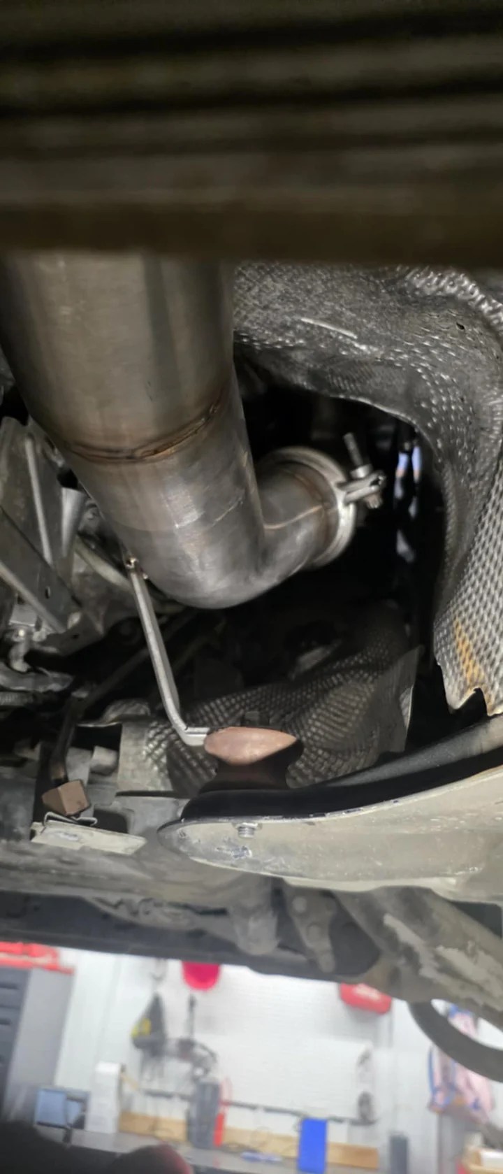 On the bottom of the oem downpipe hanger spacer, there is a small nub that must be removed for proper install. See last photo.
